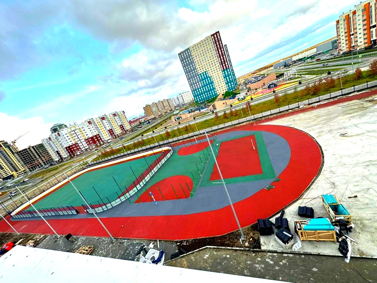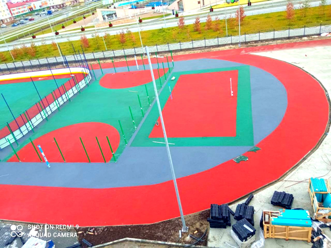 Команда рабочих делала спортивную площадку. Все сделали очень быстро, все стадии были четко обговорены заранее и рассчитаны. Было приятным сюрпризом получить готовую площадку на три дня раньше запланированного времени.